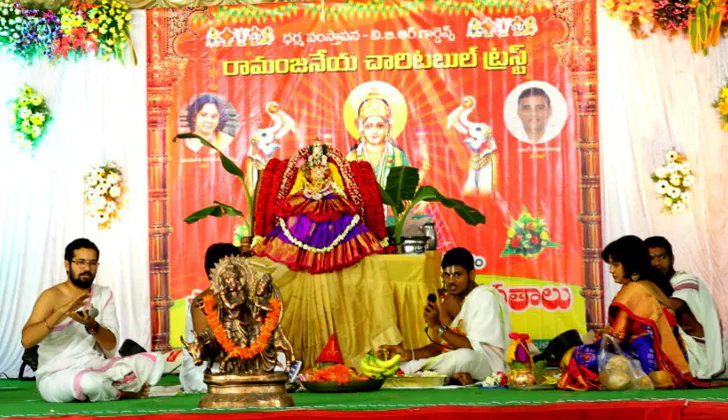 In association with Raamanjaneya Charitable Trust, Dharmasamsthapana has celebrated Saamuhika Varalakshmi Vratham. The main objective of Varalaksmi Vratam is to offer genuine prayers to Goddess Lakshmi to seek divine blessings. There are no strict rules for observing this vrat. The rituals are not rigid and even a simple prayer is enough to appease Goddess Varalakshmi.