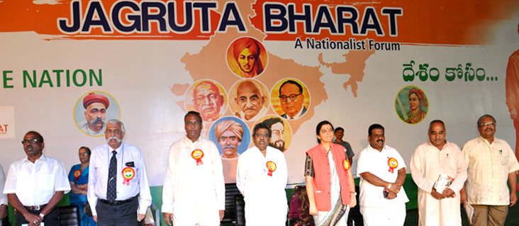 "Desam Kosam" Presided by Sri MVR Sastry ji program to unite youth of Hyderabad against Anti National Forces. Chiefguests G. D. Bakshi - Indian commanding officer, Smt. Monika Arora Advocate Supreme Court of India, Sri Sirivennela Sitaramasastri - Poet & Lyricist and others. Organised by Jagruta Bharat, supported by Dharmasamsthapana.